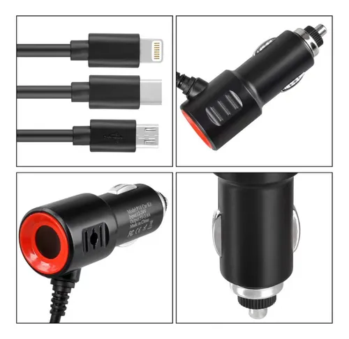 Features: It includes a car charger adapter and a built-in 3-in-1 charging cable with connectors for Type-C, Lightning (for iPhones), and Micro USB devices.